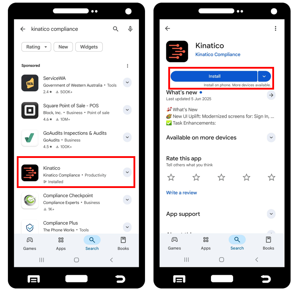 💡 Pro Tip: If the app store says Update rather than Install, you already have the Kinatico Compliance app on your device