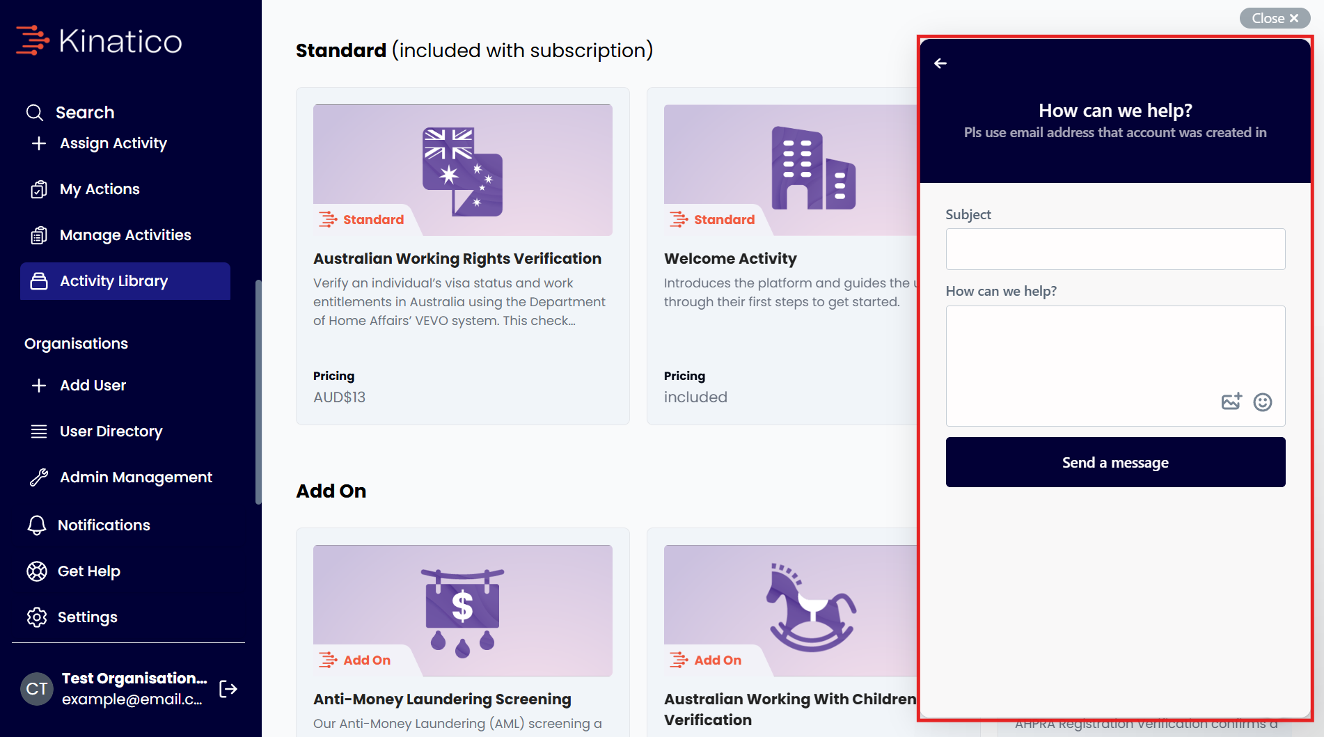 How to reach us: Message our team through the support panel or email us directly at cxsupport@kinatico.com